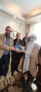 آقای علی اصغر دلیلی صالح در حال دریافت کتابی بعنوان جایزه از دست شاعر پیشکسوت انجمن های ادبی خراسان، استاد حاج شیخ محمد علی صفری«زرافشان» جمعه/۶/۸ /۱۴۰۱- انجمن ادبی کمال ادب- منزل استاد محمد نیک.