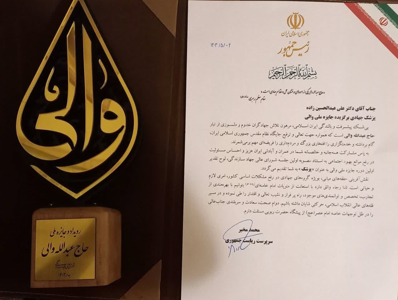 ۱۶- دریافت ۵ لوح تقدیر به واسطه پزشک نمونه